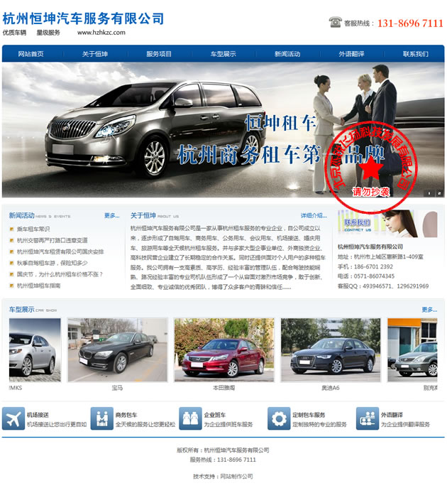 杭州恒坤汽車服務有限公司是一家從事杭州租車服務的專業企業,自公司成立以來,逐步形成了自駕用車、商務用車、公務用車、會議用車、機場接送、婚慶用車、旅游用車等全天候杭州租車服務