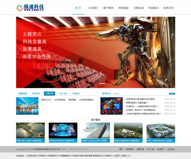北京娛速科技有限公司是一家以特種4D影院為主導,娛樂產業技術研制開發、三維影視制作為核心的高新技術企業,業務范圍涵蓋特效影院、主題公園、特效影片等……