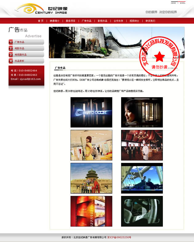 世紀映像廣告?zhèn)髅接邢薰臼且患伊⒆阌诒就痢⒓瘒H化運作的影視文化交流傳播公司。公司以市場營銷的先進理論為基礎,秉承整合營銷傳播的操作理念,幫助國 內及國際客戶在影視項目策劃制作、大型文藝節(jié)目及展會策劃、企業(yè)宣傳策劃制作等方面提供品牌建設及發(fā)展策略,從而提升品牌整體競爭力和品牌價值……