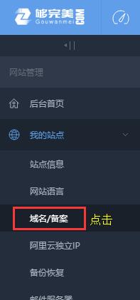 進入 網站管理后臺 ,點擊左側 我的站點 - 域名/備案 。