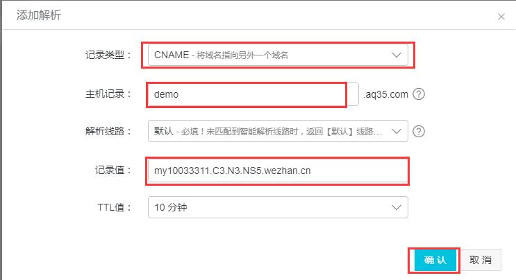 再次點擊 添加解析 按鈕,打開如下彈窗: