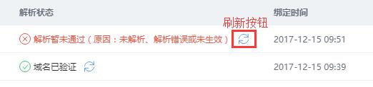 再次回到智能云建 管理后臺的 域名/備案 列表,點擊 解析狀態 欄中的小刷新圖標。